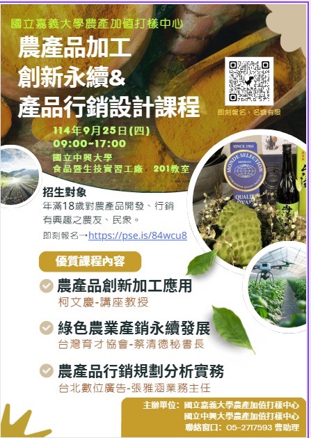 / 農產品創新加工應用與綠色農業永續發展行銷分析實務